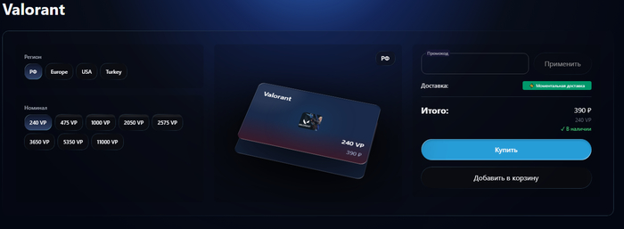 возможность купить валюту Валорант разных номиналов